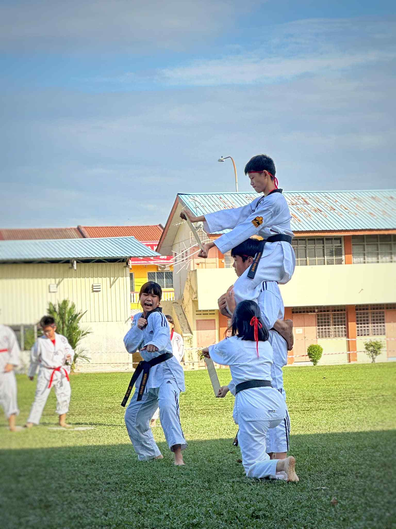 Mika is attending 2 classes ie normal and poomsae every Saturday from 4pm to 7.30pm. it helps him in building his character. Be more attentive, focus. The most importantly, feeling the togetherness/ being part of a big family with his fellow team mates/ members.